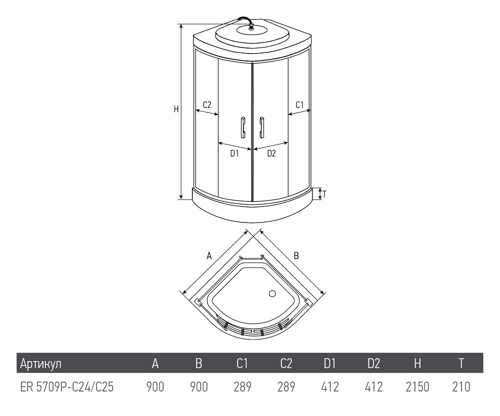 Душевая кабина Erlit Eclipse ER5709P-C24 (90*90*215) тонированное стекло