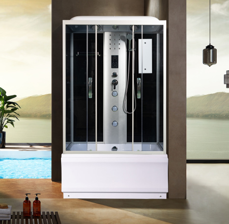 Душевая кабина River 120 прямоугольная проста и удобна в использовании. Она герметична, не позволяет воде попасть на пол. Ее можно установить в помещении с любой отделкой. Душевая кабина представляет собой готовое решение: стойки, смесители, лейка для душа идут в комплекте. После установки устройства удается уменьшить расход воды. Обратите внимание: размер кабины рассчитывается по внешним элементам. Внутреннее пространство будет меньше. экструзионный акрил (ПММА/АБС) — основной материал сантехнического изделия — отличается надежностью, презентабельным внешним видом. матовый хром цвет душевой кабины станет беспроигрышным вариантом для санузла, выполненном в любом стилевом решении (от классики до модерна).