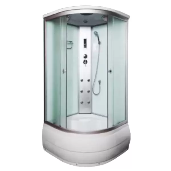 ВМ-888E (90*90*215) высокий поддон, зад. стенка белая перед. Стекла белые рифлёные.