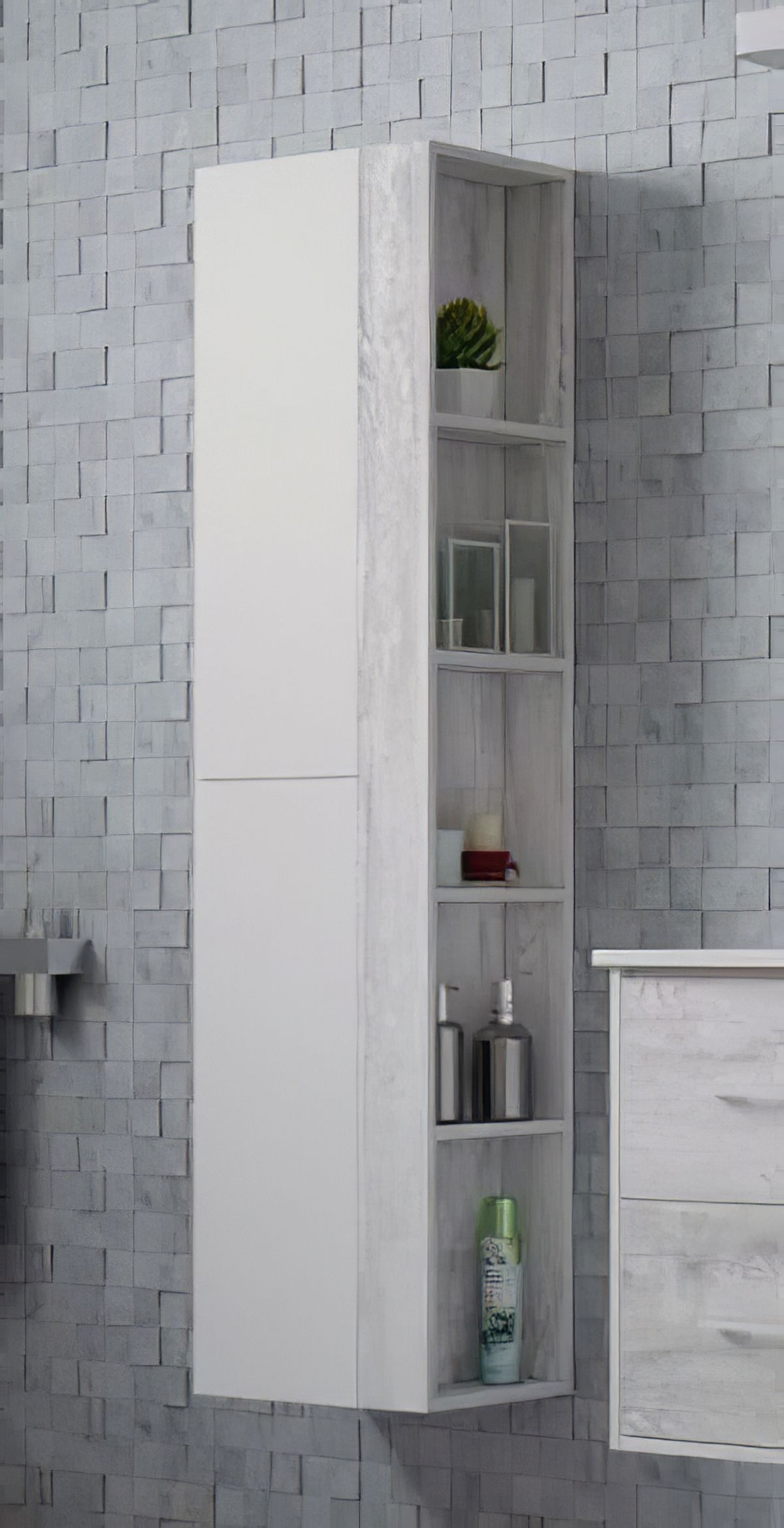 Пеналы для ванной комнаты Corozo 158.5x40x30 см. помогут организовать порядок в помещении, скрыв и посторонних глаз и вместив в себя средства гигиены, косметику, расчески, мочалки, полотенца и другие банные принадлежности. В зависимости от параметров и размеров санузла вы можете выбрать навесные или напольные, прямые или угловые модели, с зеркалом или без него.Изготовленные из МДФ, пеналы отличаются практичностью и износостойкостью, не портятся под воздействием влаги и постоянного перепада температур. За изделиями легко ухаживать: чтобы избавиться от небольших загрязнений, достаточно протереть их мягкой тряпочкой с использованием неабразивного моющего средства.