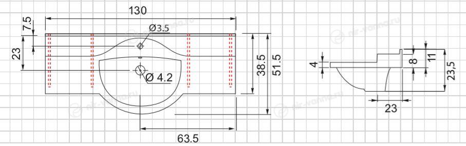 Раковина Цвет&Стиль Домино 130*51,5