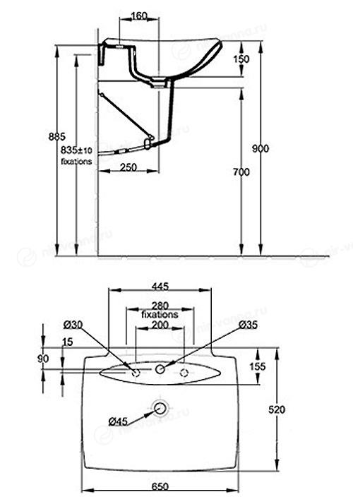 Раковина Jacob Delafon Escale 65*52 с полупьедесталом