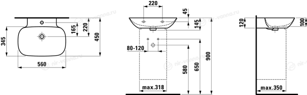 Раковина Laufen Ino 56*45 без отверстия под смеситель