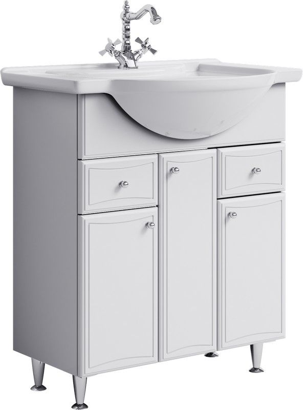 Тумба с раковиной Aqwella Барселона Люкс 85 с бельевой корзиной белая