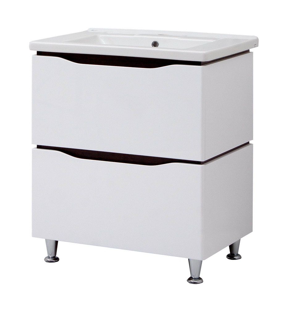 прямоугольная тумба с раковиной Cerutti Spa сделает ванную комнату уютной и поможет рационально организовать пространство. Корпус мебели изготовлен из ЛДСП — сертифицированного, безопасного материала. При габаритах 73 см.х45.3 см конструкция не выглядит массивной, но благодаря удобным полкам вмещает много вещей. Высота 85.5 см позволяет удобно доставать до раковины. Фасады тумбы выполнены из МДФ. Их (белый, темное дерево) и элегантная форма гармонично сочетаются между собой. За поверхностями легко ухаживать. Их рекомендуется протирать мягкой губкой или тканевой салфеткой с нейтральным моющим средством без абразивных частиц.