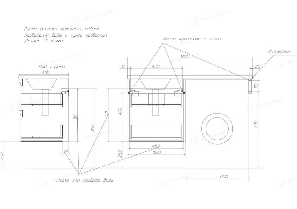 Возможна установка над стиральной машиной