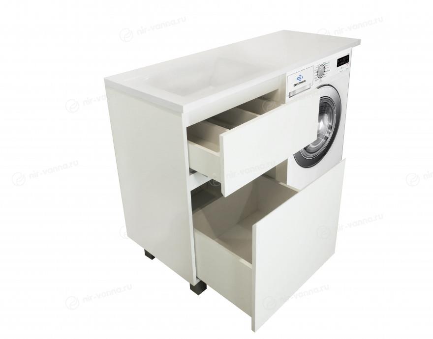 Тумба с раковиной Эстет Dallas Luxe 130 белая/на выбор L под стиральную машину 2 ящика напольная