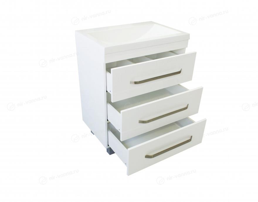 прямоугольная тумба с раковиной Эстет сделает ванную комнату уютной и поможет рационально организовать пространство. Корпус мебели изготовлен из ЛДСП — сертифицированного, безопасного материала. При габаритах 60 см.х46.6 см конструкция не выглядит массивной, но благодаря удобным полкам вмещает много вещей. Высота 76 см позволяет удобно доставать до раковины. Фасады тумбы выполнены из МДФ. Их (белый/на выбор) и элегантная форма гармонично сочетаются между собой. За поверхностями легко ухаживать. Их рекомендуется протирать мягкой губкой или тканевой салфеткой с нейтральным моющим средством без абразивных частиц.