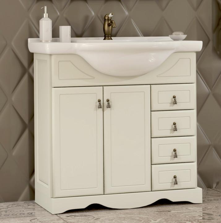 прямоугольная тумба с раковиной Opadiris сделает ванную комнату уютной и поможет рационально организовать пространство. Корпус мебели изготовлен из ЛДСП — сертифицированного, безопасного материала. При габаритах 87 см.х51 см конструкция не выглядит массивной, но благодаря удобным полкам вмещает много вещей. Высота 89 см позволяет удобно доставать до раковины. Фасады тумбы выполнены из Массив бука. Их (Бежевый) и элегантная форма гармонично сочетаются между собой. За поверхностями легко ухаживать. Их рекомендуется протирать мягкой губкой или тканевой салфеткой с нейтральным моющим средством без абразивных частиц.