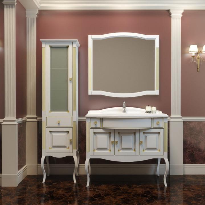 Тумба с раковиной Opadiris Лаура 100 белая с бежевой патиной/swarovski золото