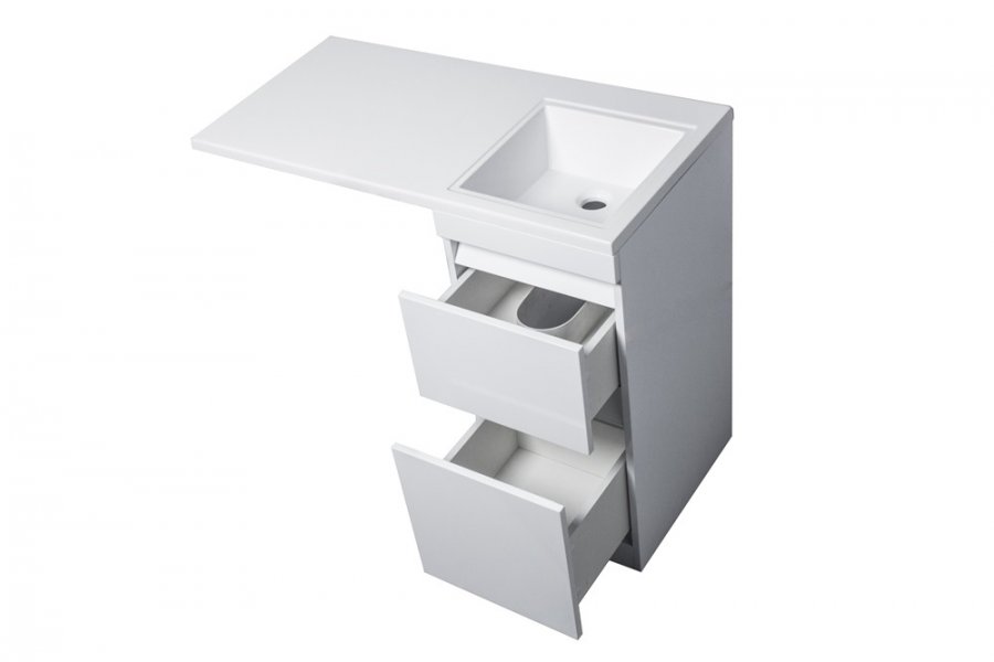 прямоугольная тумба с раковиной Style Line сделает ванную комнату уютной и поможет рационально организовать пространство. Корпус мебели изготовлен из МДФ — сертифицированного, безопасного материала. При габаритах 100 см.х48 см конструкция не выглядит массивной, но благодаря удобным полкам вмещает много вещей. Высота 88 см позволяет удобно доставать до раковины. Фасады тумбы выполнены из МДФ. Их (белый глянец) и элегантная форма гармонично сочетаются между собой. За поверхностями легко ухаживать. Их рекомендуется протирать мягкой губкой или тканевой салфеткой с нейтральным моющим средством без абразивных частиц.