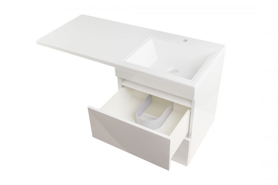 прямоугольная тумба с раковиной Style Line сделает ванную комнату уютной и поможет рационально организовать пространство. Корпус мебели изготовлен из МДФ — сертифицированного, безопасного материала. При габаритах 110.2 см.х48.2 см конструкция не выглядит массивной, но благодаря удобным полкам вмещает много вещей. Высота 48 см позволяет удобно доставать до раковины. Фасады тумбы выполнены из МДФ. Их (белый глянец) и элегантная форма гармонично сочетаются между собой. За поверхностями легко ухаживать. Их рекомендуется протирать мягкой губкой или тканевой салфеткой с нейтральным моющим средством без абразивных частиц.