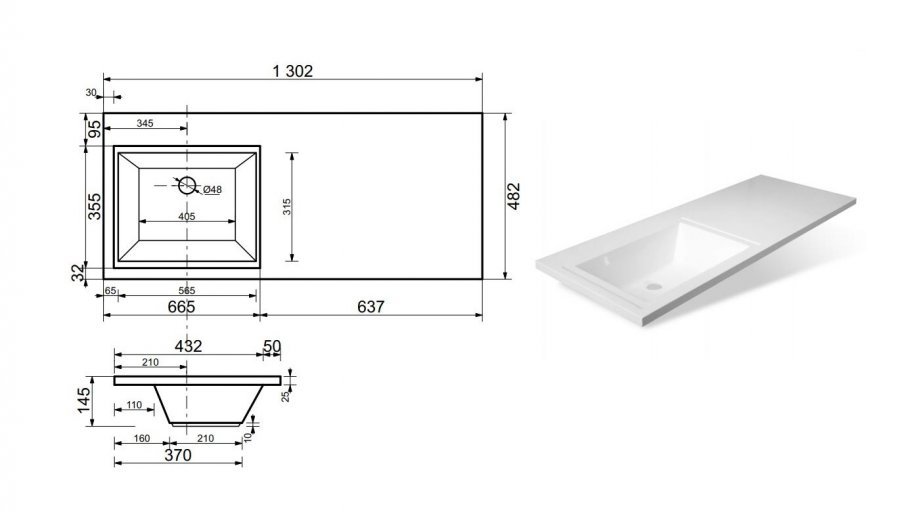 Тумба с раковиной Style Line Даллас 130 R Люкс Plus подвесная белая