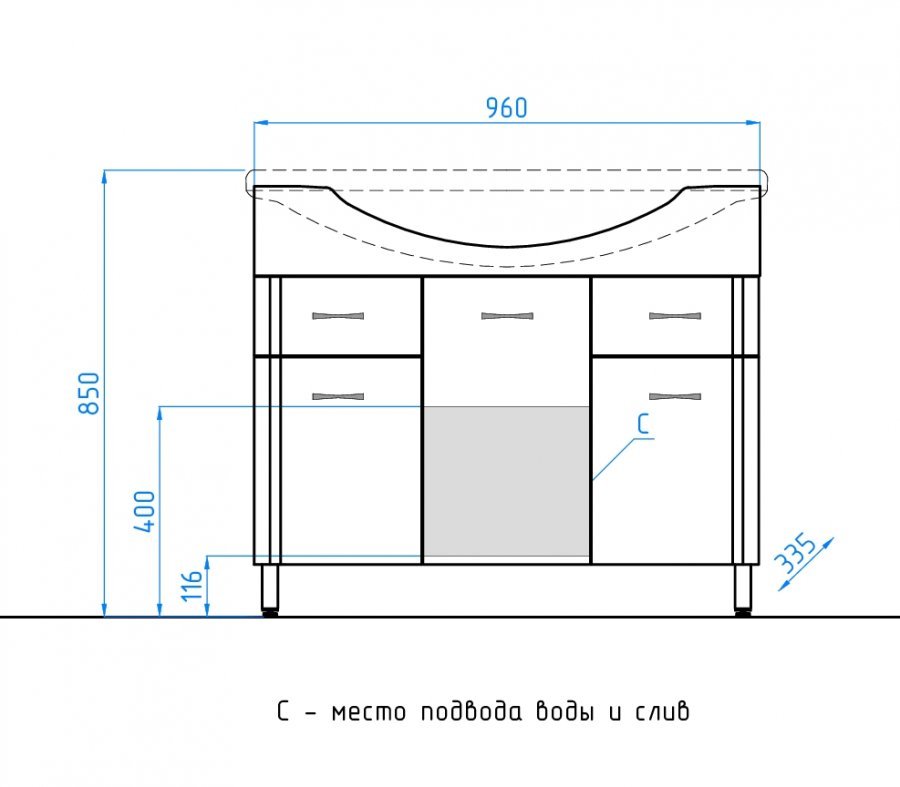 прямоугольная тумба с раковиной Style Line сделает ванную комнату уютной и поможет рационально организовать пространство. Корпус мебели изготовлен из ДСП — сертифицированного, безопасного материала. При габаритах 100.5 см.х52 см конструкция не выглядит массивной, но благодаря удобным полкам вмещает много вещей. Высота 85 см позволяет удобно доставать до раковины. Фасады тумбы выполнены из МДФ. Их (белый глянец) и элегантная форма гармонично сочетаются между собой. За поверхностями легко ухаживать. Их рекомендуется протирать мягкой губкой или тканевой салфеткой с нейтральным моющим средством без абразивных частиц.