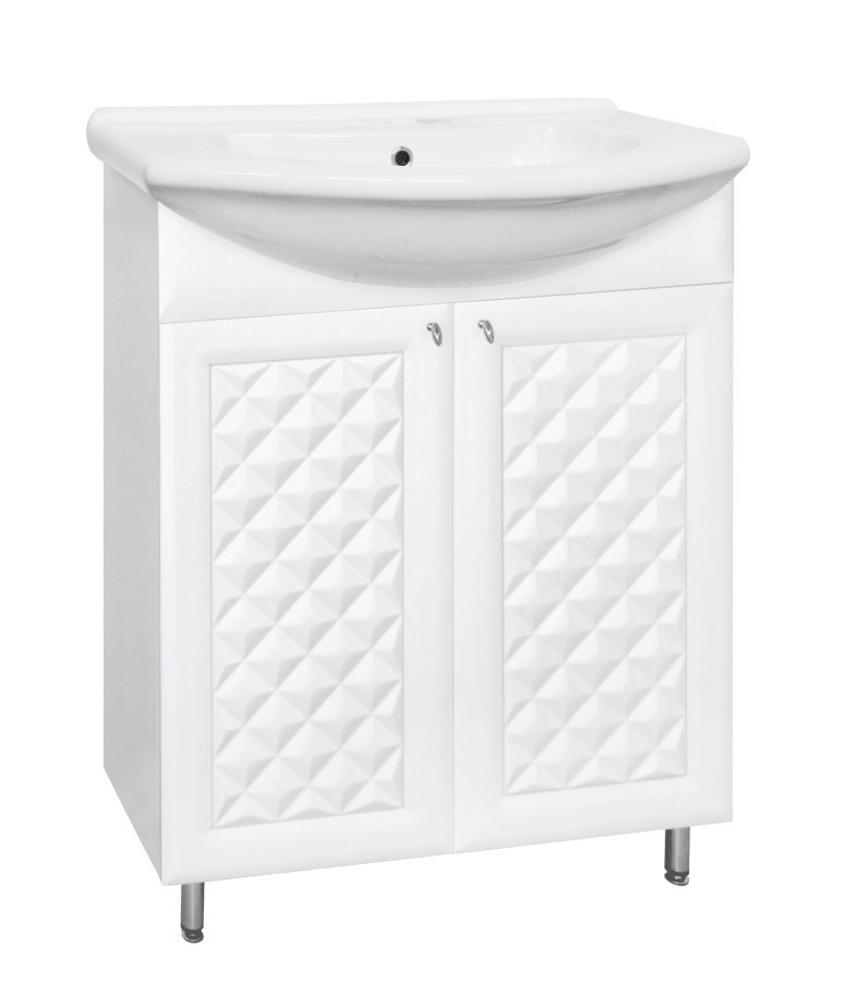 прямоугольная тумба с раковиной Style Line сделает ванную комнату уютной и поможет рационально организовать пространство. Корпус мебели изготовлен из МДФ — сертифицированного, безопасного материала. При габаритах 75.5 см.х50.5 см конструкция не выглядит массивной, но благодаря удобным полкам вмещает много вещей. Высота 85 см позволяет удобно доставать до раковины. Фасады тумбы выполнены из МДФ. Их (белый глянец) и элегантная форма гармонично сочетаются между собой. За поверхностями легко ухаживать. Их рекомендуется протирать мягкой губкой или тканевой салфеткой с нейтральным моющим средством без абразивных частиц.