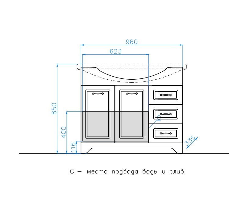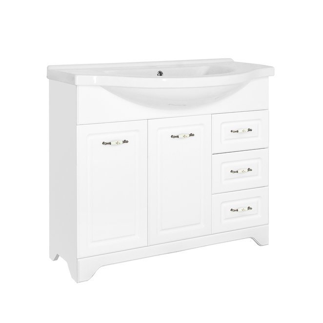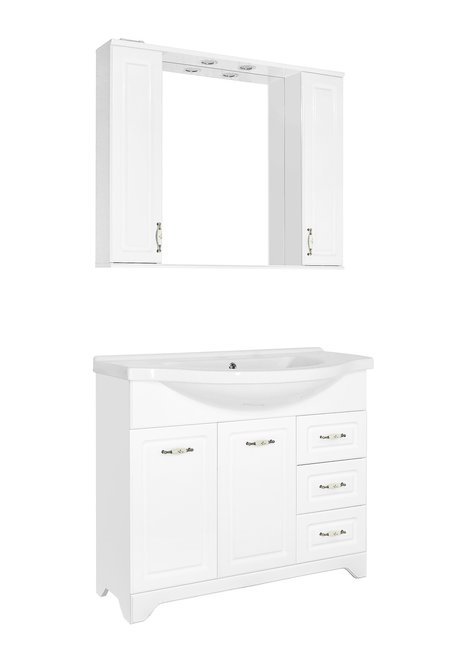 прямоугольная тумба с раковиной Style Line сделает ванную комнату уютной и поможет рационально организовать пространство. Корпус мебели изготовлен из МДФ — сертифицированного, безопасного материала. При габаритах 100.5 см.х52 см конструкция не выглядит массивной, но благодаря удобным полкам вмещает много вещей. Высота 85 см позволяет удобно доставать до раковины. Фасады тумбы выполнены из МДФ. Их (белый глянец) и элегантная форма гармонично сочетаются между собой. За поверхностями легко ухаживать. Их рекомендуется протирать мягкой губкой или тканевой салфеткой с нейтральным моющим средством без абразивных частиц.