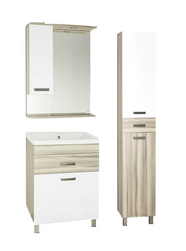 прямоугольная тумба с раковиной Style Line сделает ванную комнату уютной и поможет рационально организовать пространство. Корпус мебели изготовлен из ДСП — сертифицированного, безопасного материала. При габаритах 60 см.х45 см конструкция не выглядит массивной, но благодаря удобным полкам вмещает много вещей. Высота 85 см позволяет удобно доставать до раковины. Фасады тумбы выполнены из ЛДСП. Их (древесина/белый глянец) и элегантная форма гармонично сочетаются между собой. За поверхностями легко ухаживать. Их рекомендуется протирать мягкой губкой или тканевой салфеткой с нейтральным моющим средством без абразивных частиц.