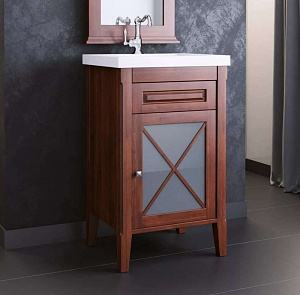 Тумба с раковиной Opadiris Тибет 50 антикварный орех (фасад с художественным стеклом)
