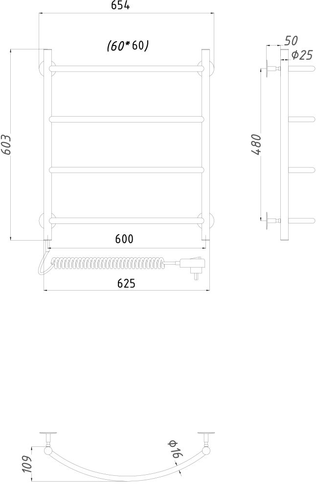 Полотенцесушитель электрический Тругор Пэк 6 60x60
