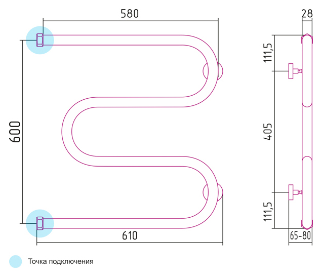 Полотенцесушитель водяной Сунержа М-образный 60x60