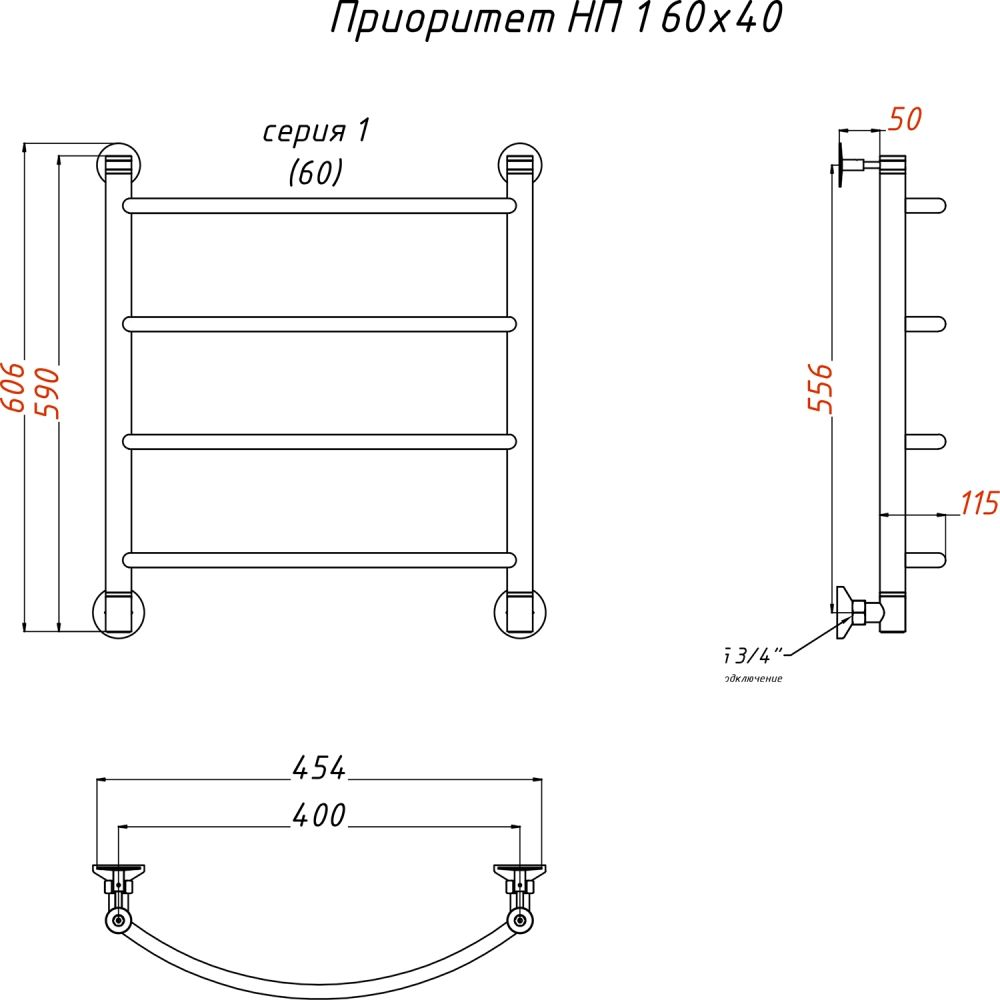 Полотенцесушитель водяной Тругор ЛЦ Приоритет НП 1 60x40