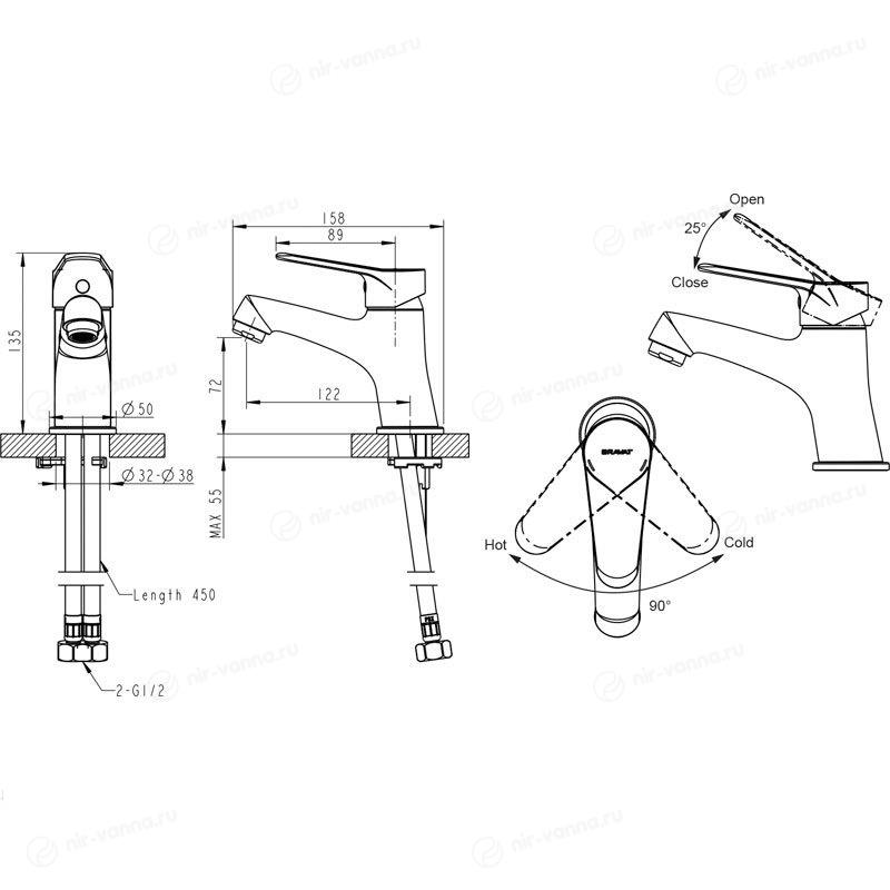 Смеситель для раковины Bravat позволяет легко отрегулировать напор горячей и холодной воды и получить поток нужной температуры. Для изготовления прибора используется латунь — долговечный материал, устойчивый к поверхностным механическим повреждениям и окислению. Тип управления — рычажное — делает смеситель надежным и простым в использовании.