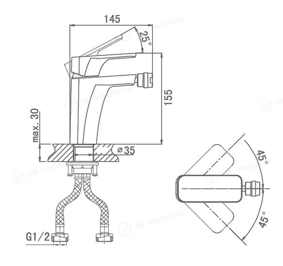 Смеситель для биде D&K позволяет легко отрегулировать напор горячей и холодной воды и получить поток нужной температуры. Для изготовления прибора используется латунь — долговечный материал, устойчивый к поверхностным механическим повреждениям и окислению. Тип управления — рычажное — делает смеситель надежным и простым в использовании.