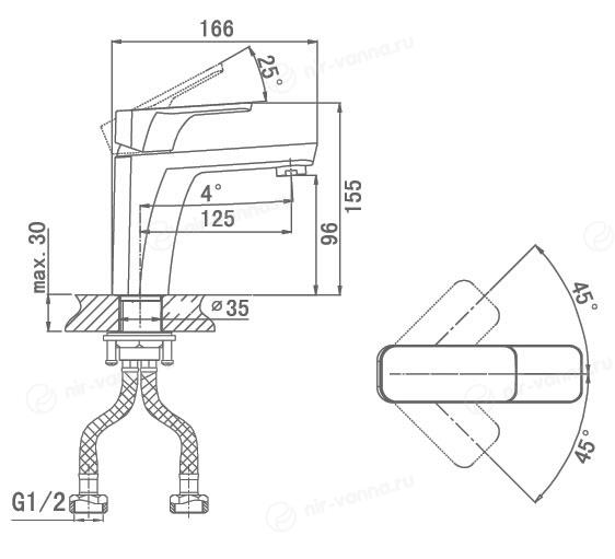 Смеситель для раковины D&K позволяет легко отрегулировать напор горячей и холодной воды и получить поток нужной температуры. Для изготовления прибора используется латунь — долговечный материал, устойчивый к поверхностным механическим повреждениям и окислению. Тип управления — рычажное — делает смеситель надежным и простым в использовании.