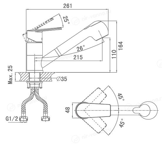 Цвет модели — хром. Это модное дизайнерское решение, которое удачно вписывается в современный стиль. Чтобы смеситель долго сохранял привлекательный вид, при уходе рекомендуется исключить абразивные и агрессивные химические вещества.