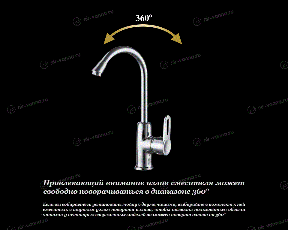 Цвет модели — хром. Это модное дизайнерское решение, которое удачно вписывается в современный стиль. Чтобы смеситель долго сохранял привлекательный вид, при уходе рекомендуется исключить абразивные и агрессивные химические вещества.