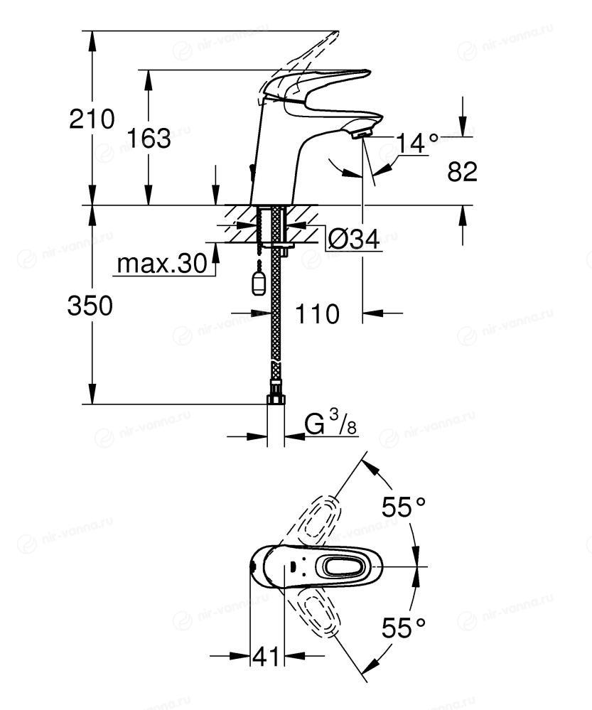 Смеситель для раковины Grohe позволяет легко отрегулировать напор горячей и холодной воды и получить поток нужной температуры. Для изготовления прибора используется латунь — долговечный материал, устойчивый к поверхностным механическим повреждениям и окислению. Тип управления — рычажное — делает смеситель надежным и простым в использовании.
