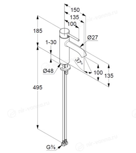 Цвет модели — черный. Это модное дизайнерское решение, которое удачно вписывается в hi-tech. Чтобы смеситель долго сохранял привлекательный вид, при уходе рекомендуется исключить абразивные и агрессивные химические вещества.
