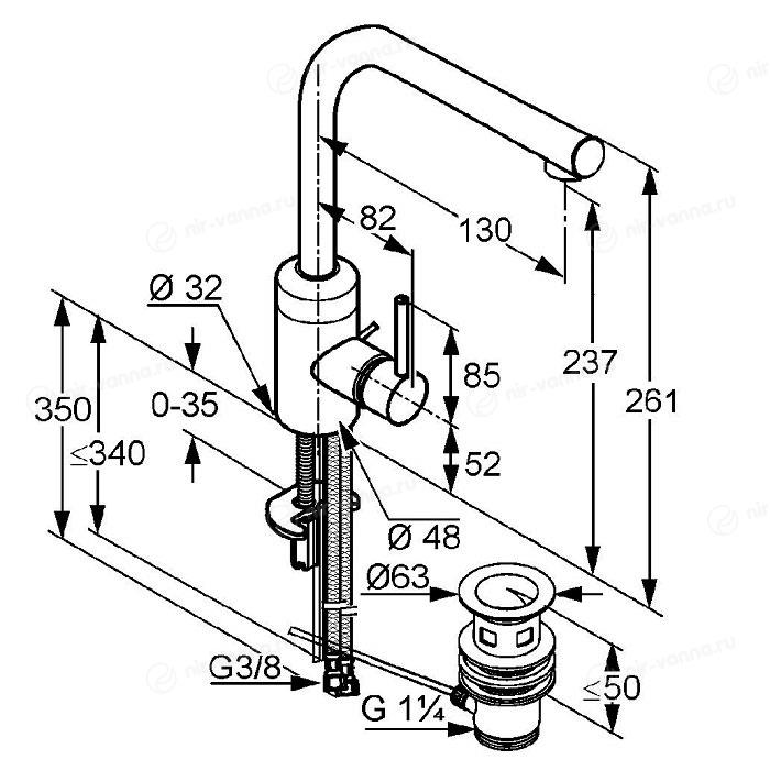 Длиной излива принято называть расстояние от основания излива до начала аэратора. Длина излива у настенных смесителей указана от стены до конца излива/аэратора.