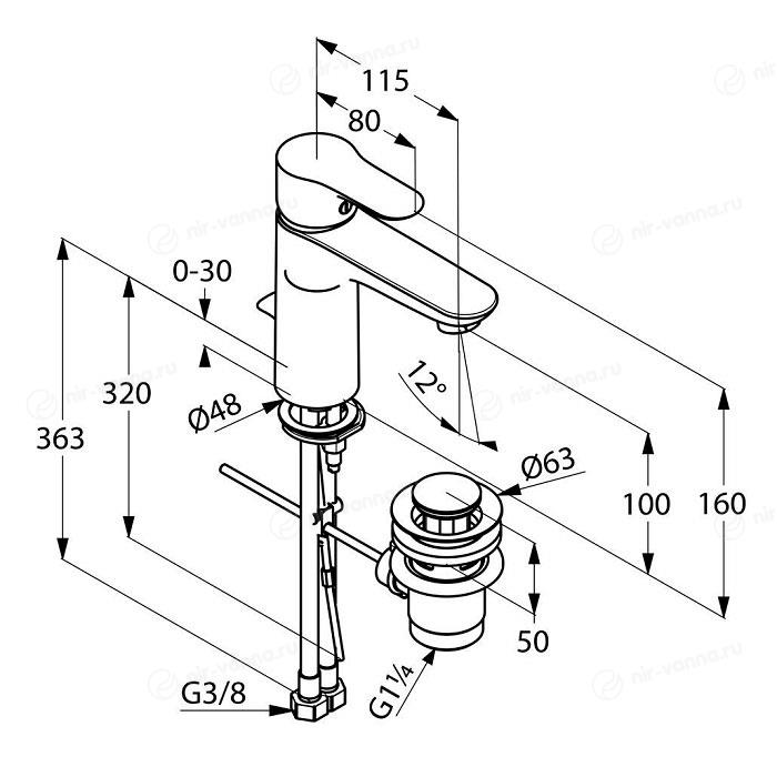 Смеситель Kludi Objekta 322600575 для раковины донный клапан