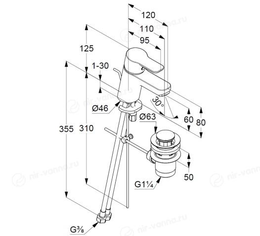 Смеситель Kludi Pure&Easy 373850565 для раковины донный клапан