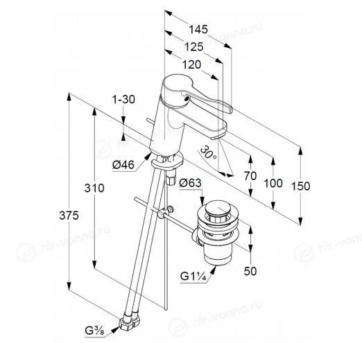 Смеситель Kludi Pure&Easy Care 372840565 для раковины донный клапан