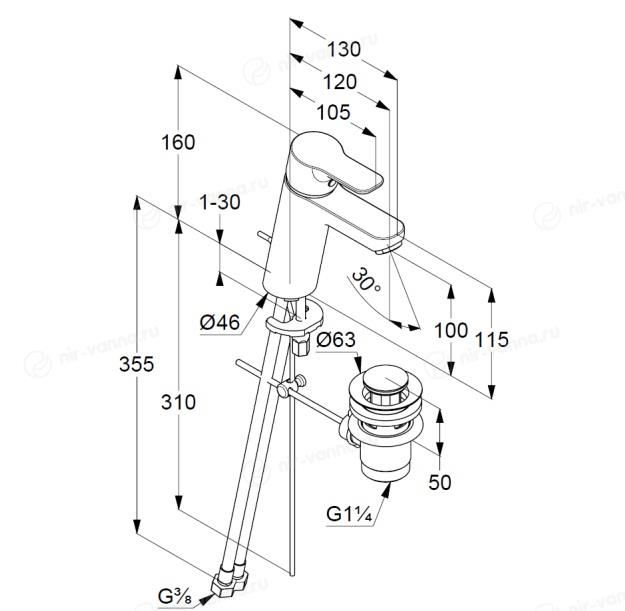 Смеситель Kludi Pure&Easy XL 372900565 для раковины донный клапан