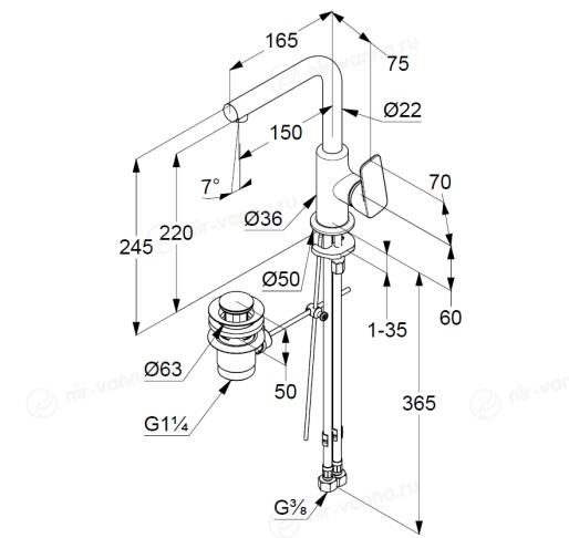 Смеситель Kludi Pure&Style 400250575 для раковины донный клапан