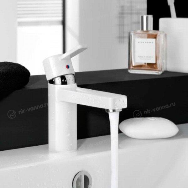 Цвет модели — белый. Это модное дизайнерское решение, которое удачно вписывается в hi-tech. Чтобы смеситель долго сохранял привлекательный вид, при уходе рекомендуется исключить абразивные и агрессивные химические вещества.