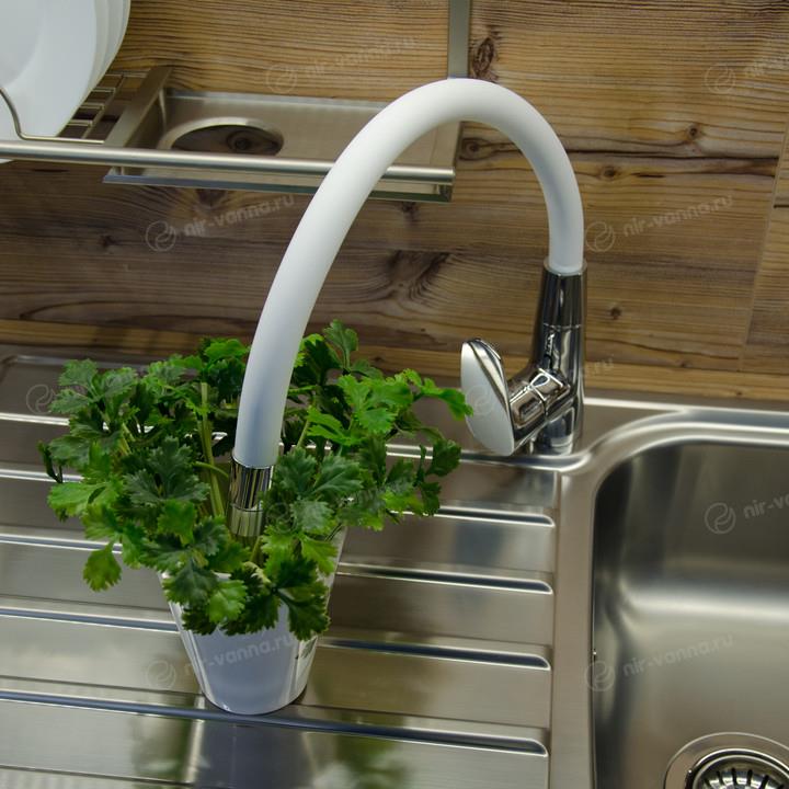 Цвет модели — белый-хром. Это модное дизайнерское решение, которое удачно вписывается в современный стиль. Чтобы смеситель долго сохранял привлекательный вид, при уходе рекомендуется исключить абразивные и агрессивные химические вещества.