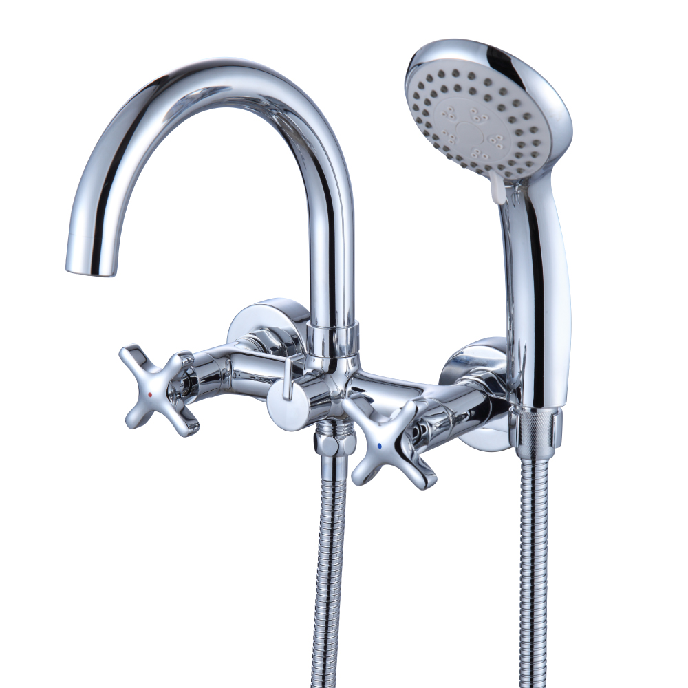 Смеситель для ванны Rossinka позволяет легко отрегулировать напор горячей и холодной воды и получить поток нужной температуры. Для изготовления прибора используется латунь — долговечный материал, устойчивый к поверхностным механическим повреждениям и окислению. Тип управления — двухзахватный — делает смеситель надежным и простым в использовании.