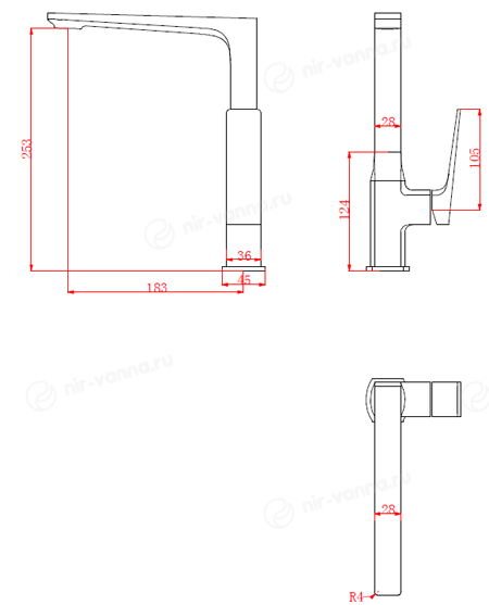 Смеситель Rossinka RS34-32 для ванны универсальный
