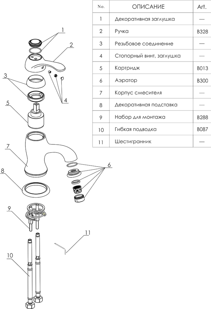 Цвет модели — бронза. Это модное дизайнерское решение, которое удачно вписывается в Ретро. Чтобы смеситель долго сохранял привлекательный вид, при уходе рекомендуется исключить абразивные и агрессивные химические вещества.