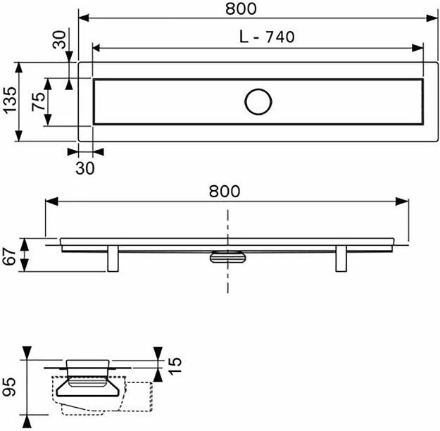 Душевой лоток Tece Linus 800 с основой под плитку и дизайн-решеткой