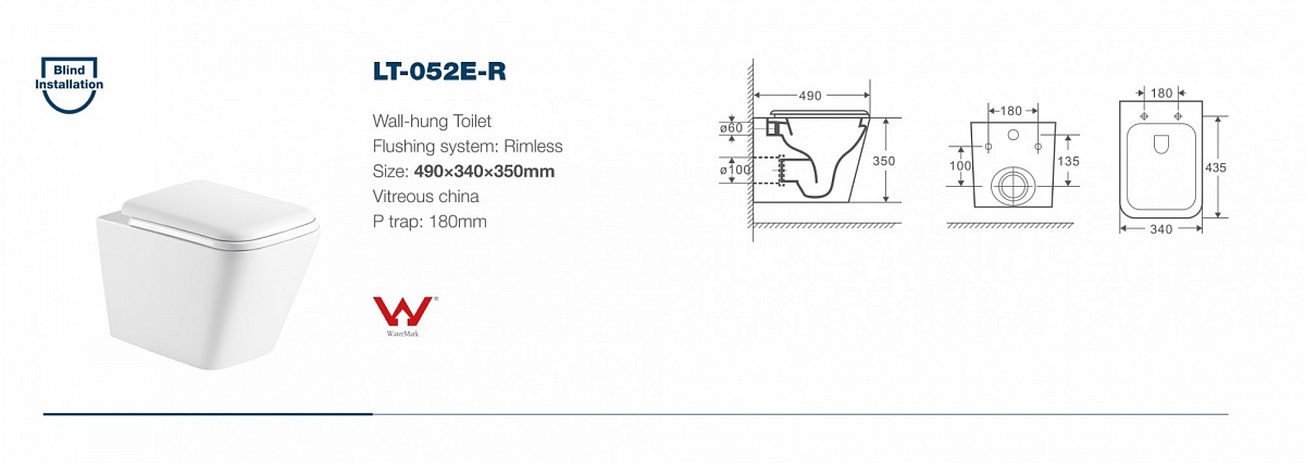 Azario Teramo (квадратный) подвесной безободковый унитаз в комплекте с сидением микролифт. Размер 490*340*350 мм.
