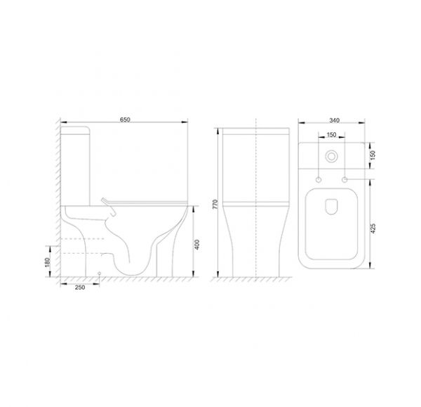 Унитаз напольный Azario FRETTA SQUARE безободковый в комплекте с бачком и сиденьем микролифт. Размер 650х340х770 мм.