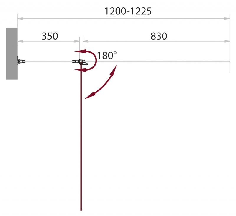Максимальная ширина от стены до самой крайней точки внешнего контура.