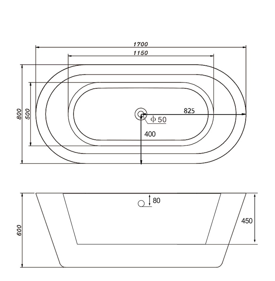 Акриловая ванна ABBER AB9213 170*80
