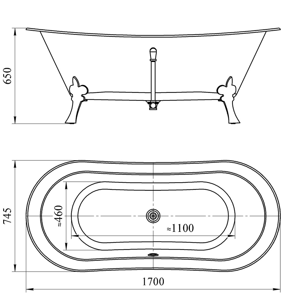 Акриловая ванна Fra Grande Орли 170*74,5 комплектация хром