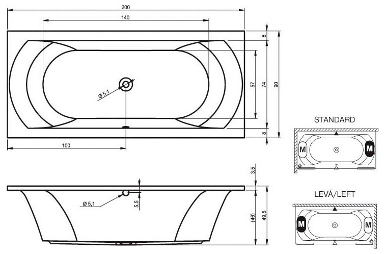 Поверхность изделия приятна на ощупь. 100% литьевой акрил препятствует размножению вредных бактерий. Такая сантехника проста в уходе. При небольших загрязнениях достаточно ополоснуть ванну теплой водой и протереть мягкой тканью. Чтобы сохранить первоначальный белый цвет ванны, не применяйте абразивные средства.